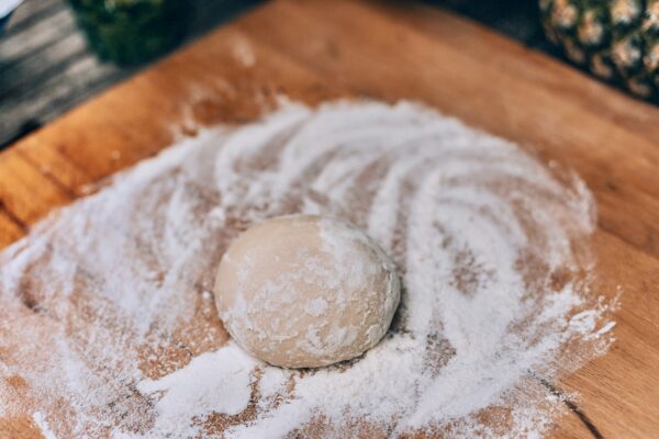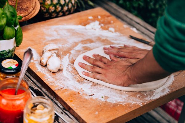Semola helpt net zoals bloem te verhinderen dat je deeg aan de pizzaschep blijft plakken, maar verbrandt minder vlug. Het geeft daarnaast een extra krokantje aan je pizzakorst. Is je deegbol mooi bedekt met de bloem of semola, dan kun je deze vervolgens op je werkvlak leggen.